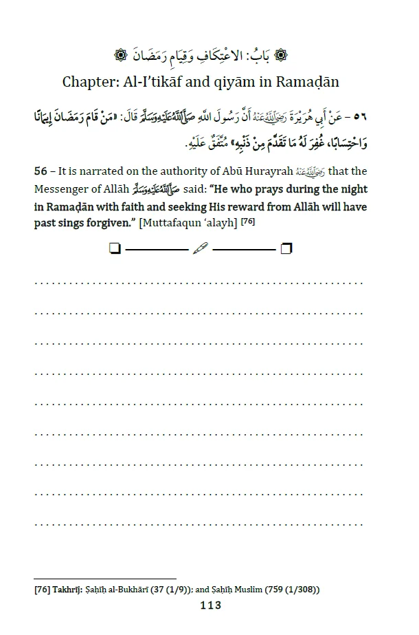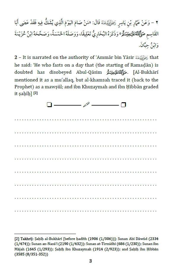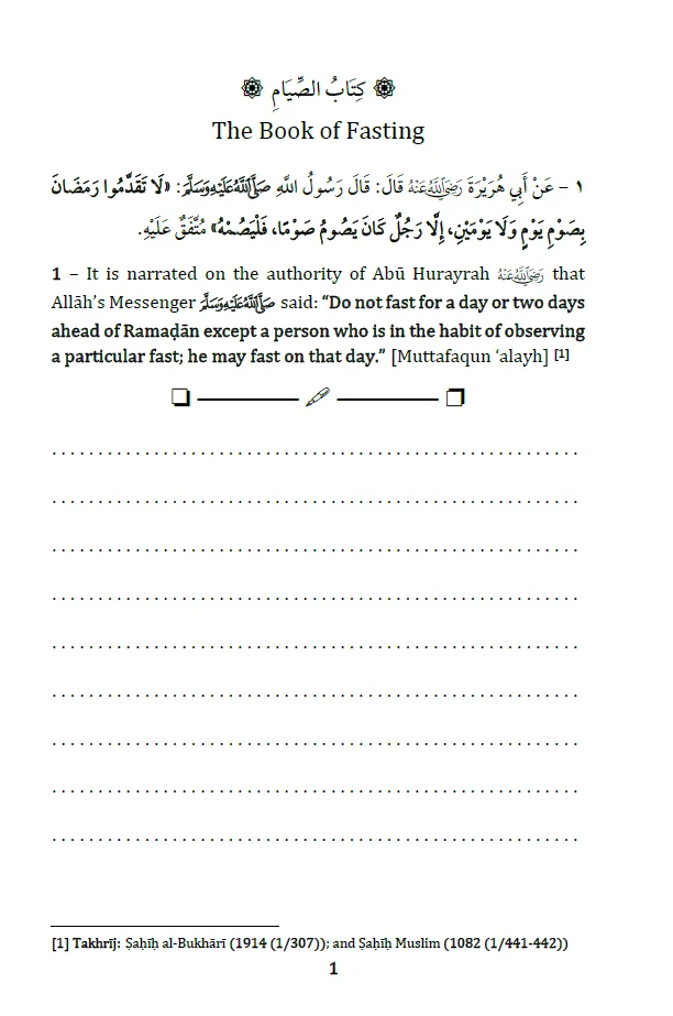 Prepare for Ramaḍān with “The Book of Fasting – Workbook”, a dedicated study guide designed for students of knowledge, madrasah classes, and independent learners. This workbook compiles the most essential narrations (aḥādīth) regarding ṣiyām (fasting), qiyām (night prayer), and i’tikāf (seclusion in the Masjid) from three authoritative aḥādīth collections: