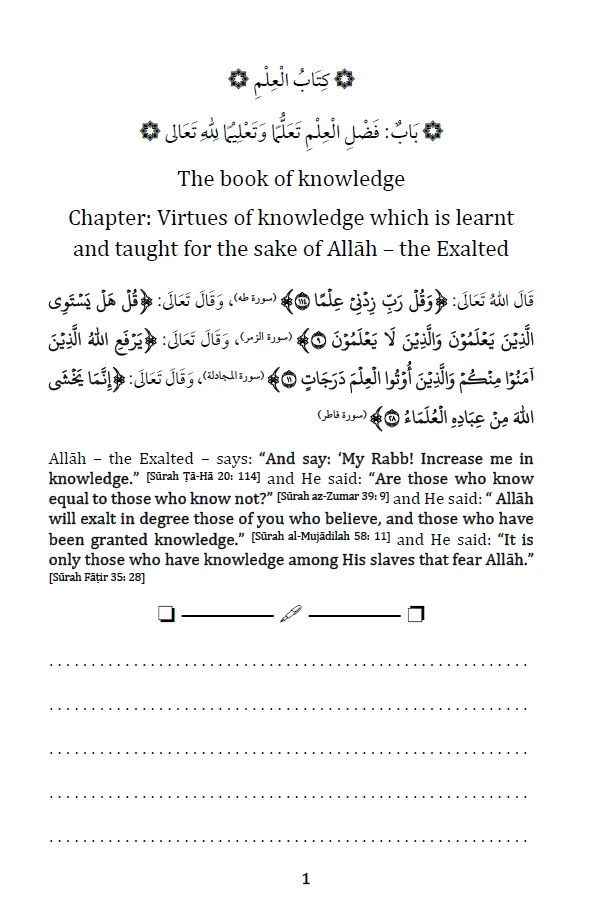 A clean study notebook based on “The Book of Knowledge – Riyāḍuṣ Ṣāliḥīn”.
